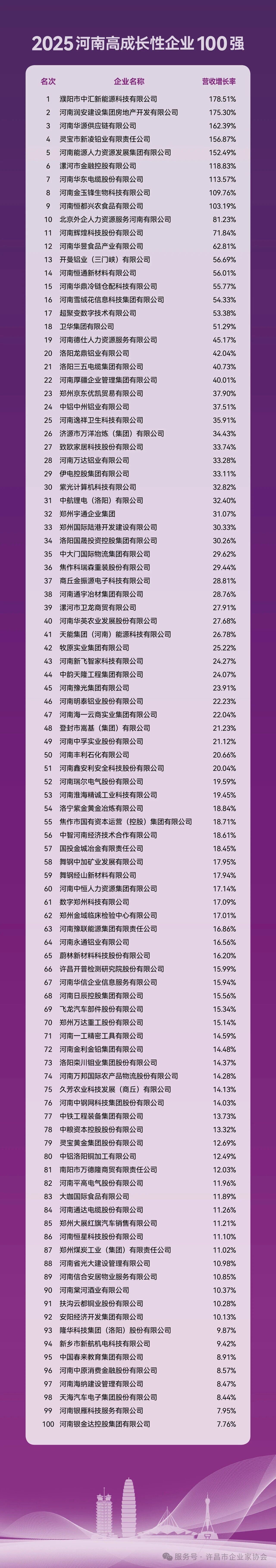 據(jù)了解,省企聯(lián)已連續(xù)第21年以企業(yè)營業(yè)收入為依據(jù),遵循國際通行規(guī)則,發(fā)布河南企業(yè)100強榜單,并連續(xù)第5年發(fā)布河南制造業(yè)企業(yè)100強、河南服務業(yè)企業(yè)100強榜單,以及第2年發(fā)布河南高成長性企業(yè)100強、河南戰(zhàn)略性新興產(chǎn)業(yè)企業(yè)100強榜單,全面展現(xiàn)我省企業(yè)的發(fā)展實力與結構變化。