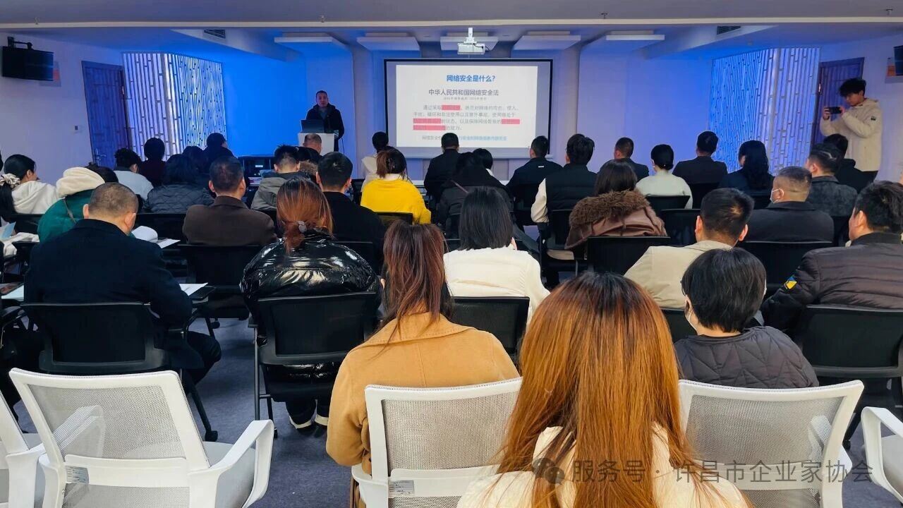12月5日上午,由許昌市企業(yè)家協(xié)會(huì)與許昌市委網(wǎng)信辦聯(lián)合主辦的“助企護(hù)網(wǎng)·網(wǎng)絡(luò)法治宣講”活動(dòng)成功舉行。許昌市委網(wǎng)信辦網(wǎng)管科科長韓傳旗、舉報(bào)中心科員劉典進(jìn)行了普法宣傳,活動(dòng)旨在加強(qiáng)企業(yè)對(duì)網(wǎng)絡(luò)法律法規(guī)的理解,提升網(wǎng)絡(luò)風(fēng)險(xiǎn)防范能力,促進(jìn)本地經(jīng)濟(jì)高質(zhì)量發(fā)展。